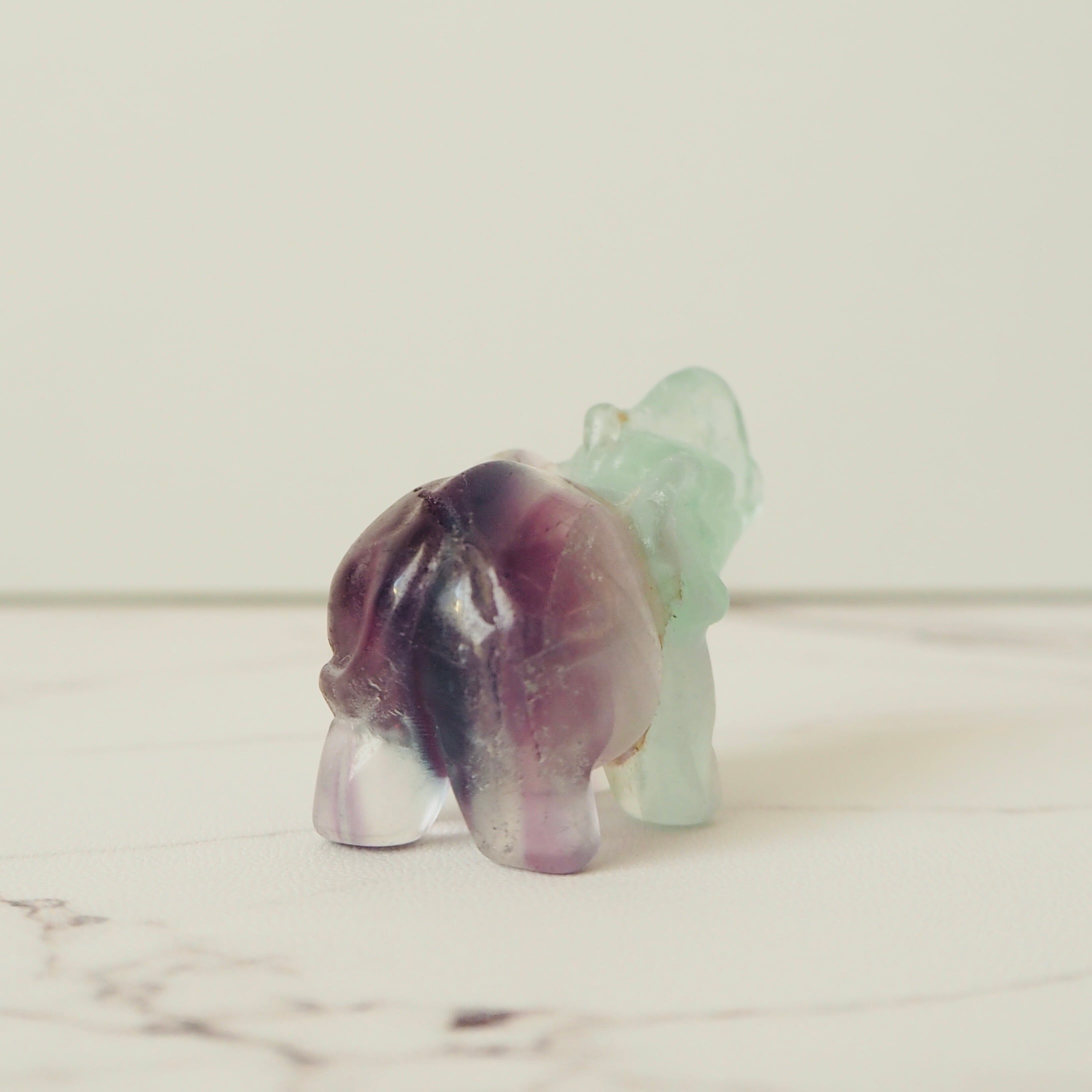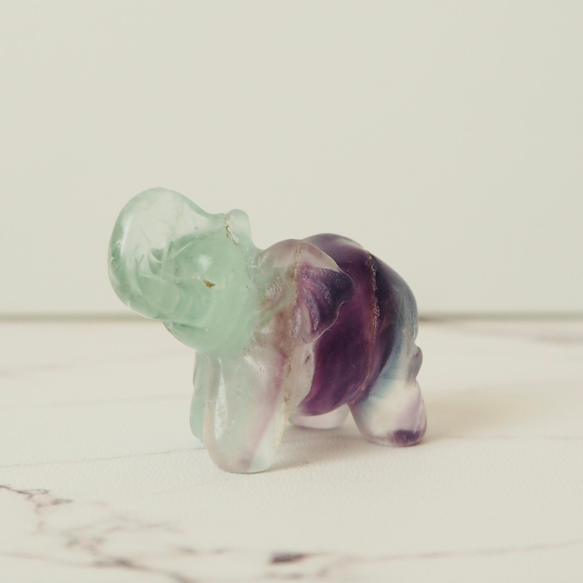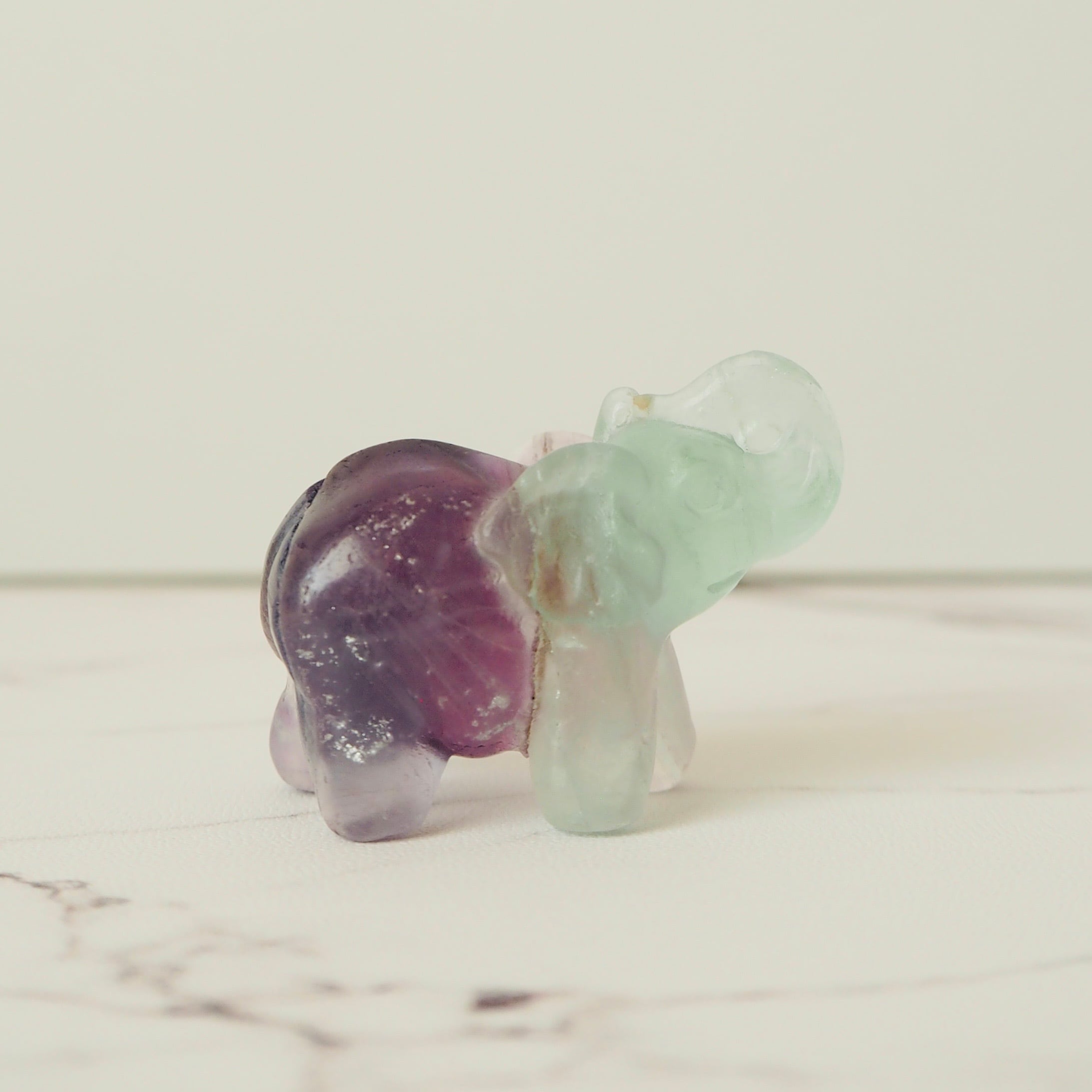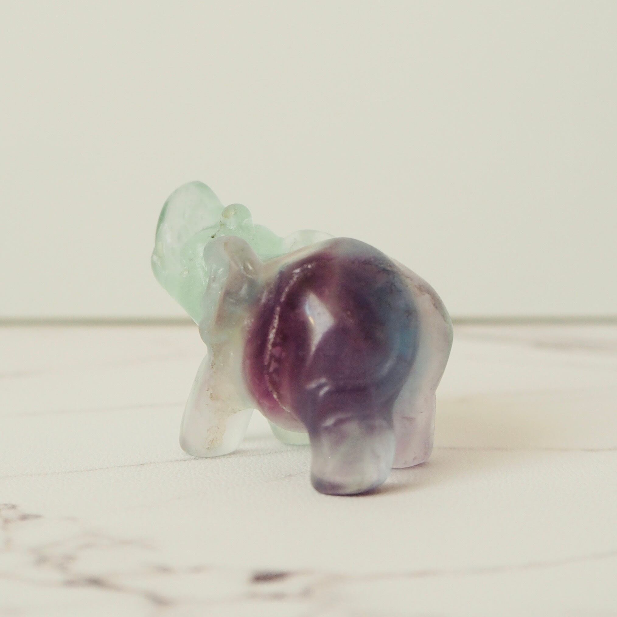 グリーンとパープルの色合いがキレイなフローライトの象です。
