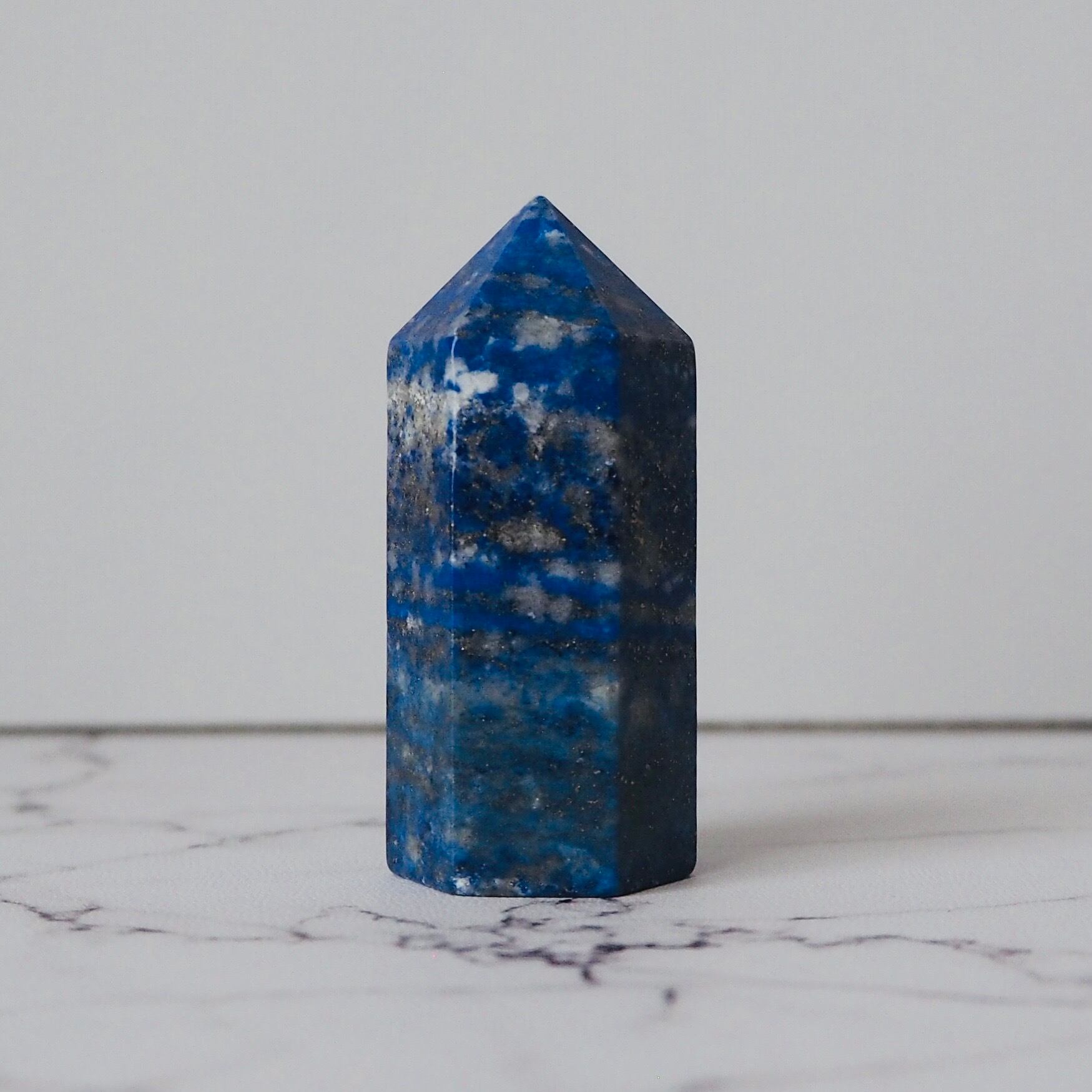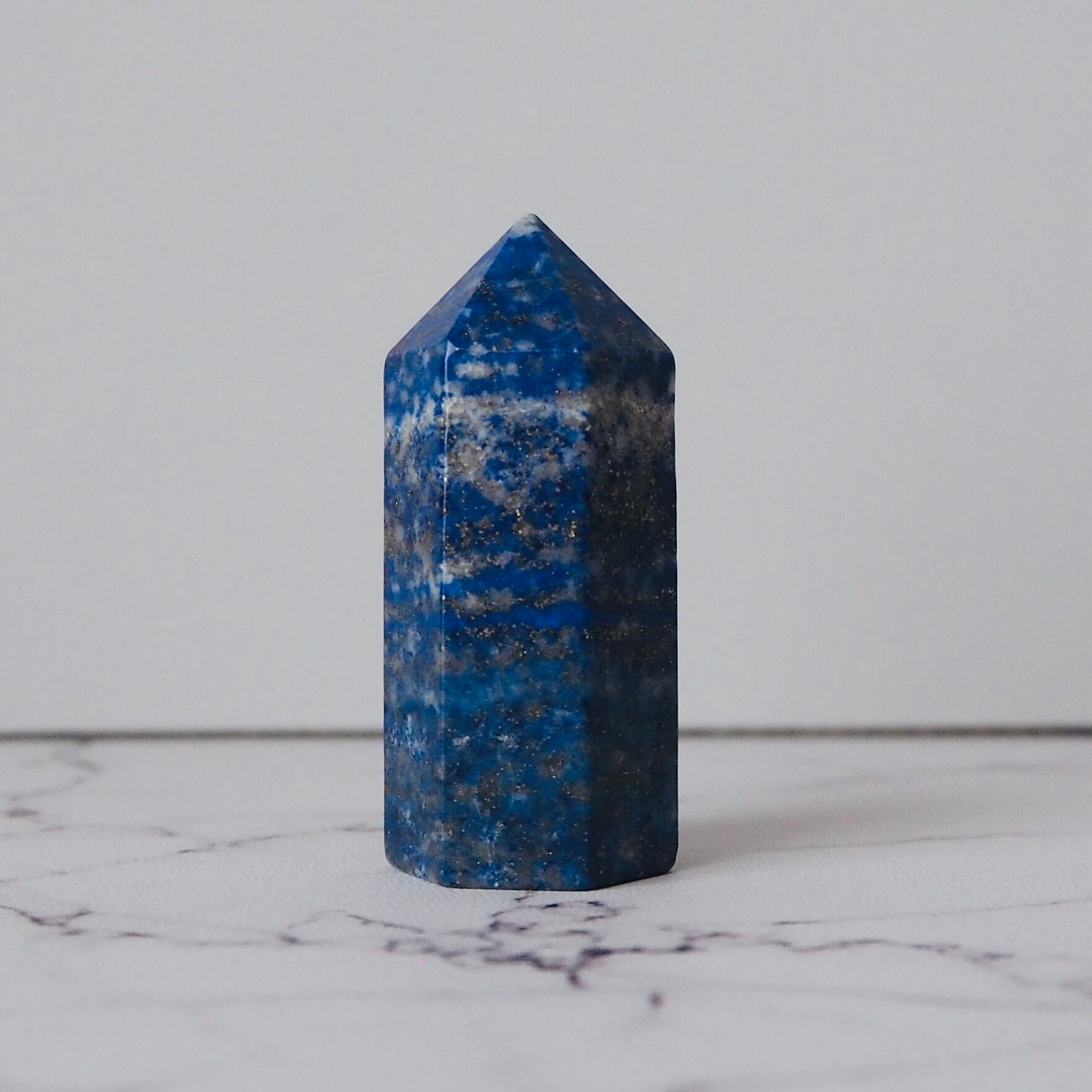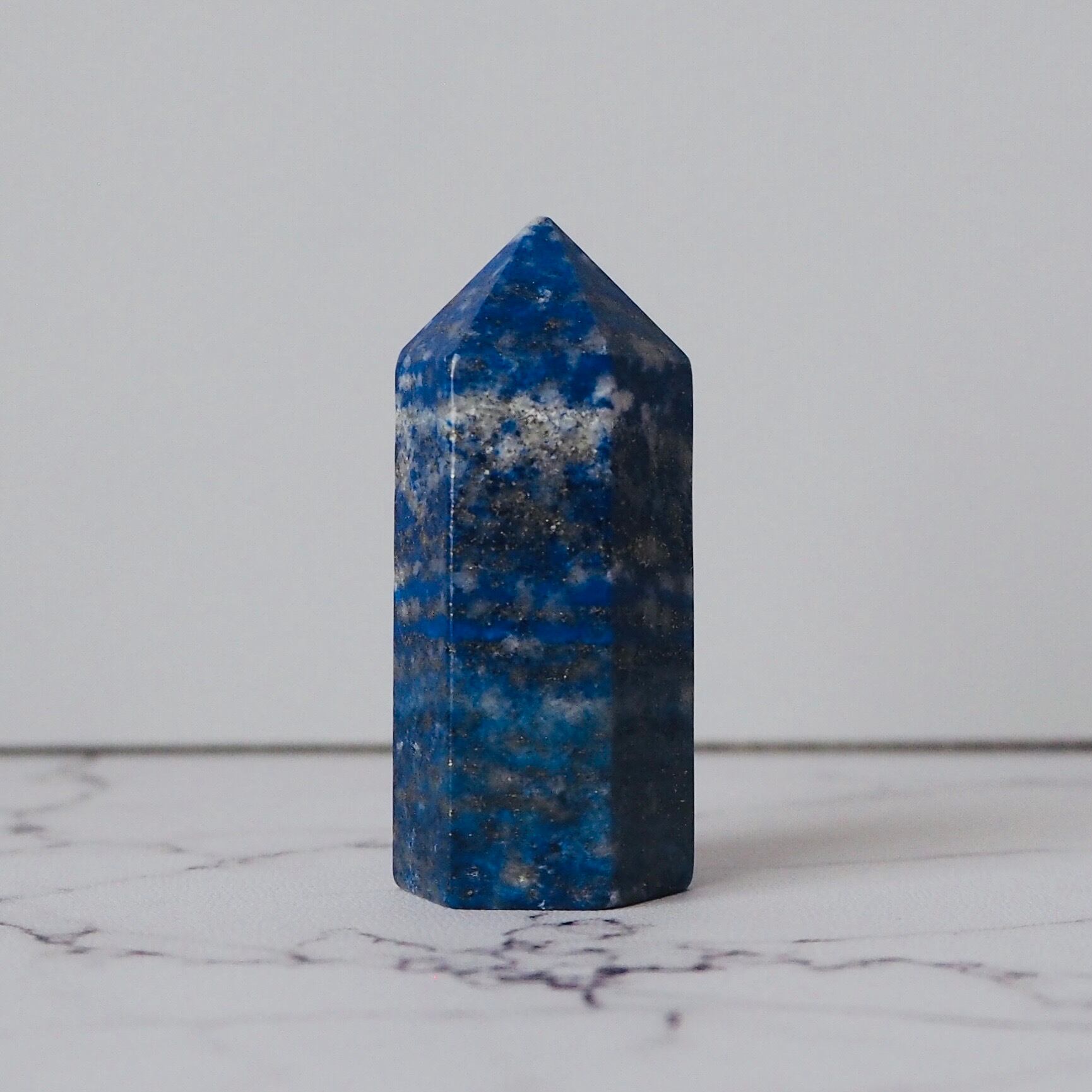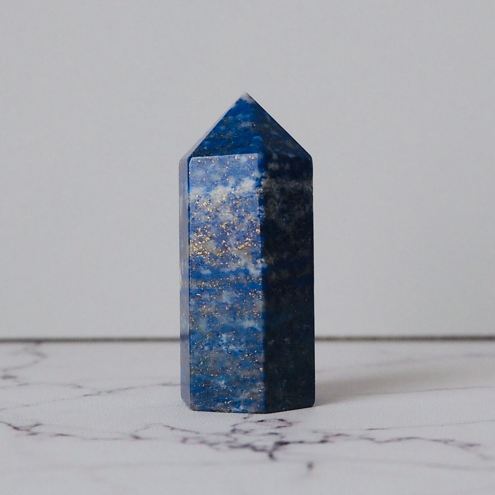 深く吸い込まれるようなブルーと星屑のような金色のコントラストが美しい、高品質なラピスラズリのポイントです。