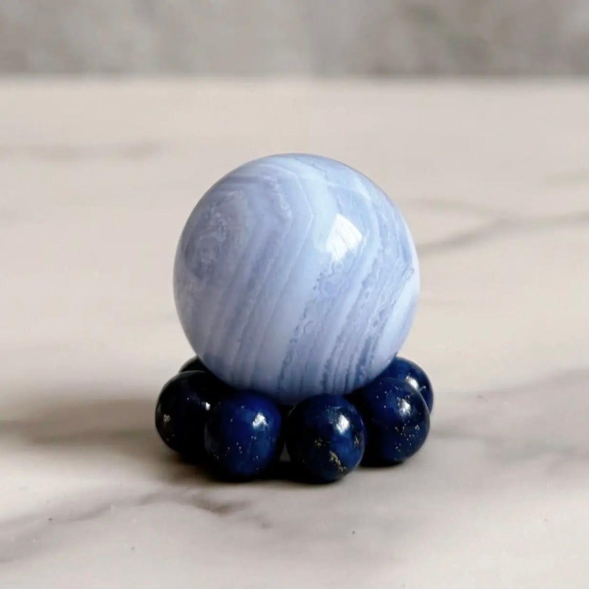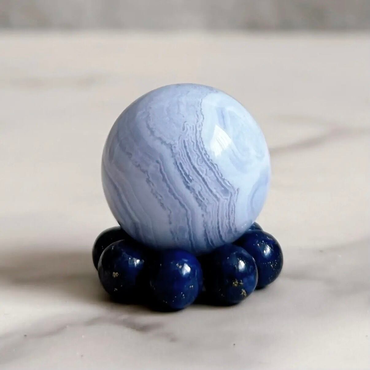 ブルーレースアゲート スフィア ラピスラズリ台座セット