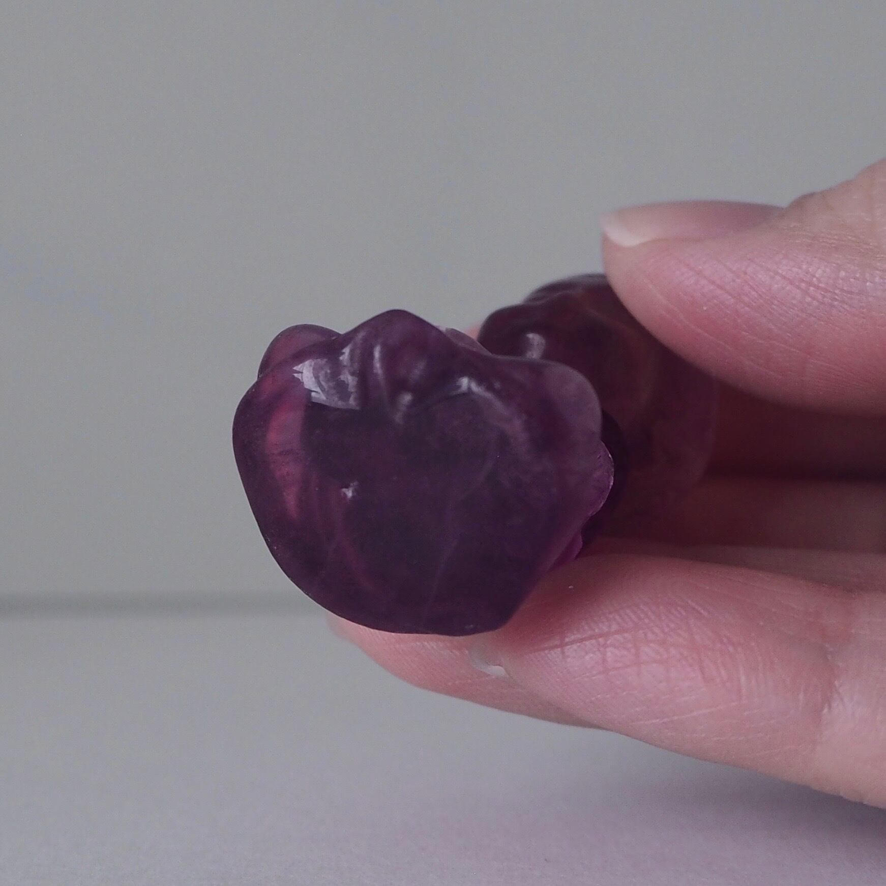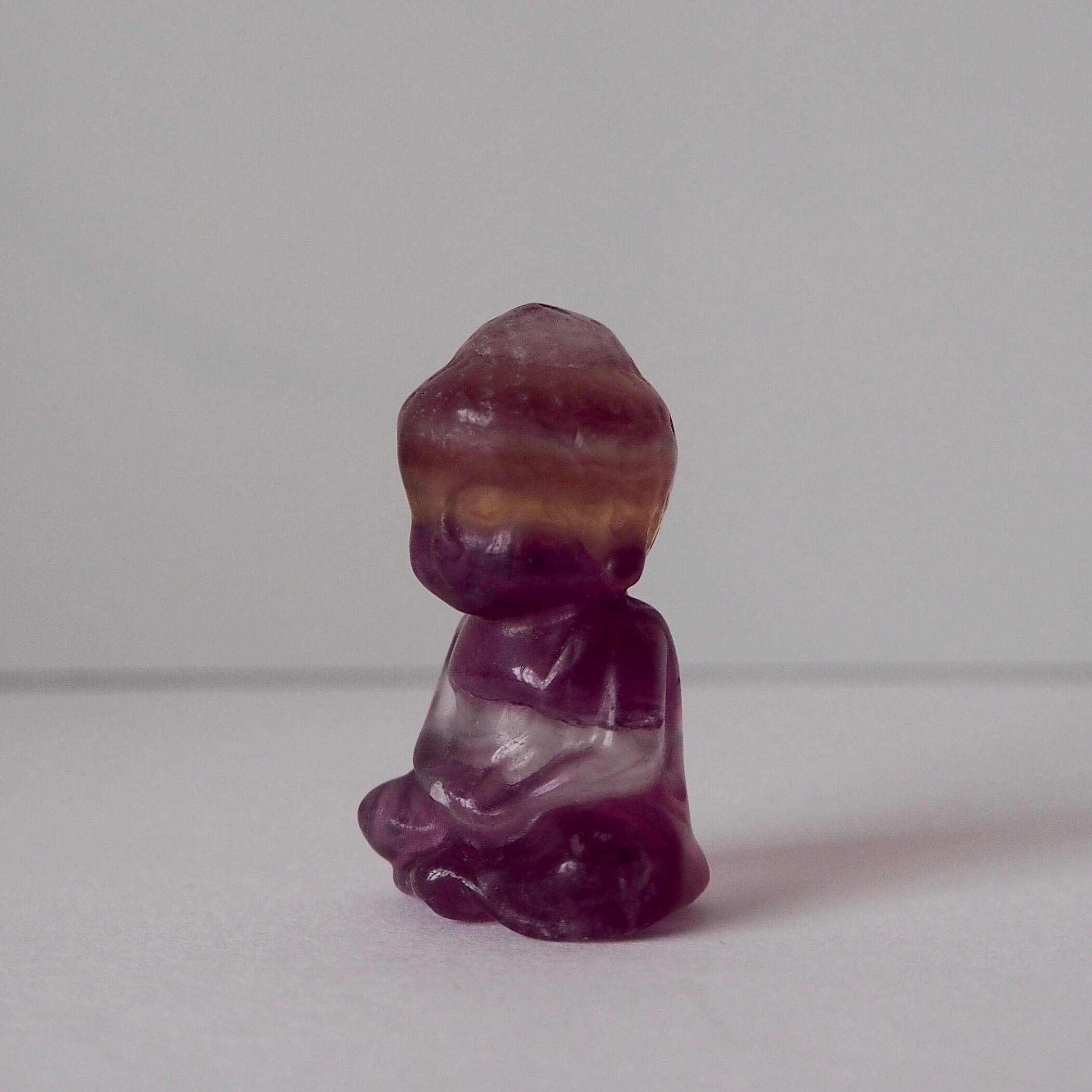 透明感あふれるフローライトを、慈愛に満ちたブッダの姿に彫り上げた特別なカービングです。