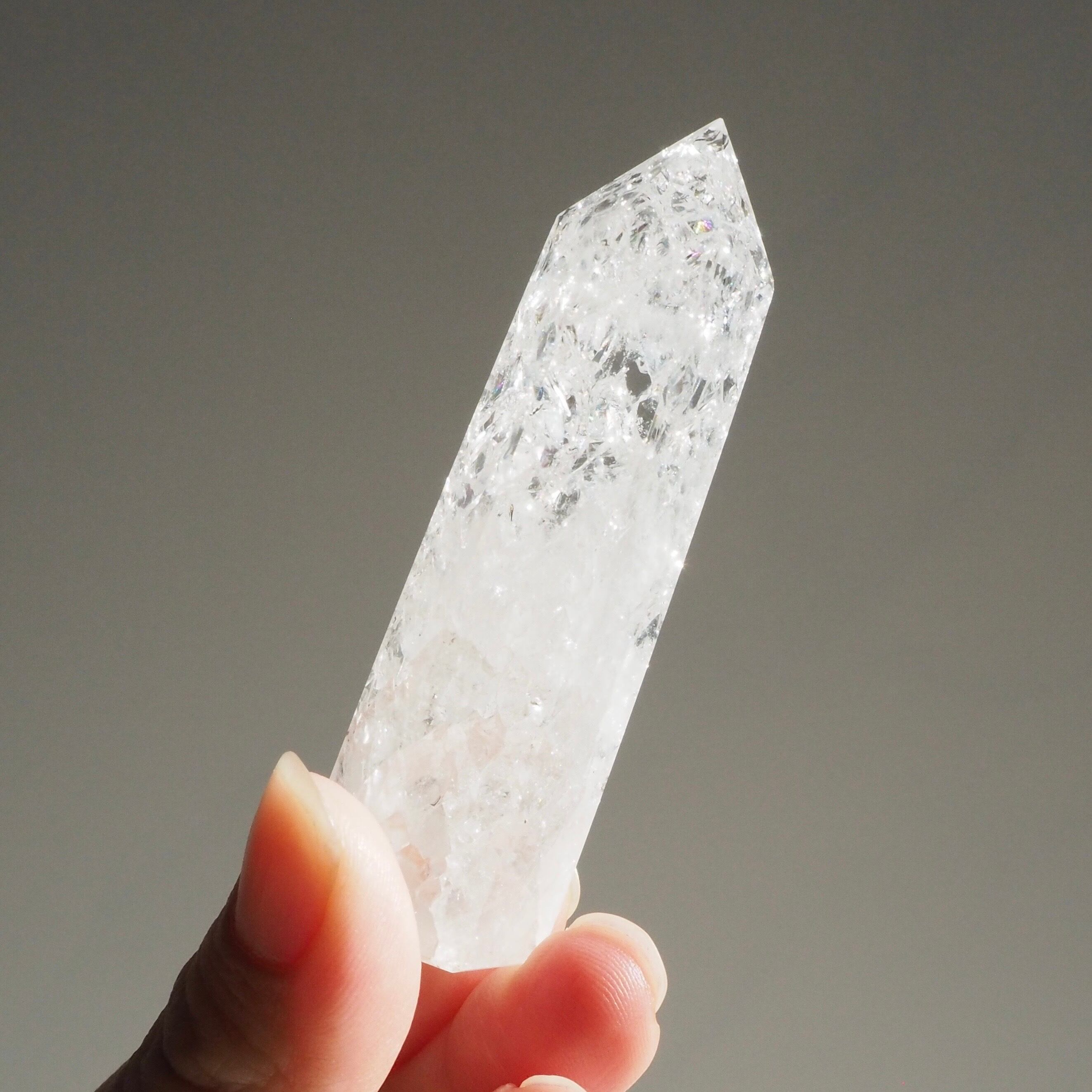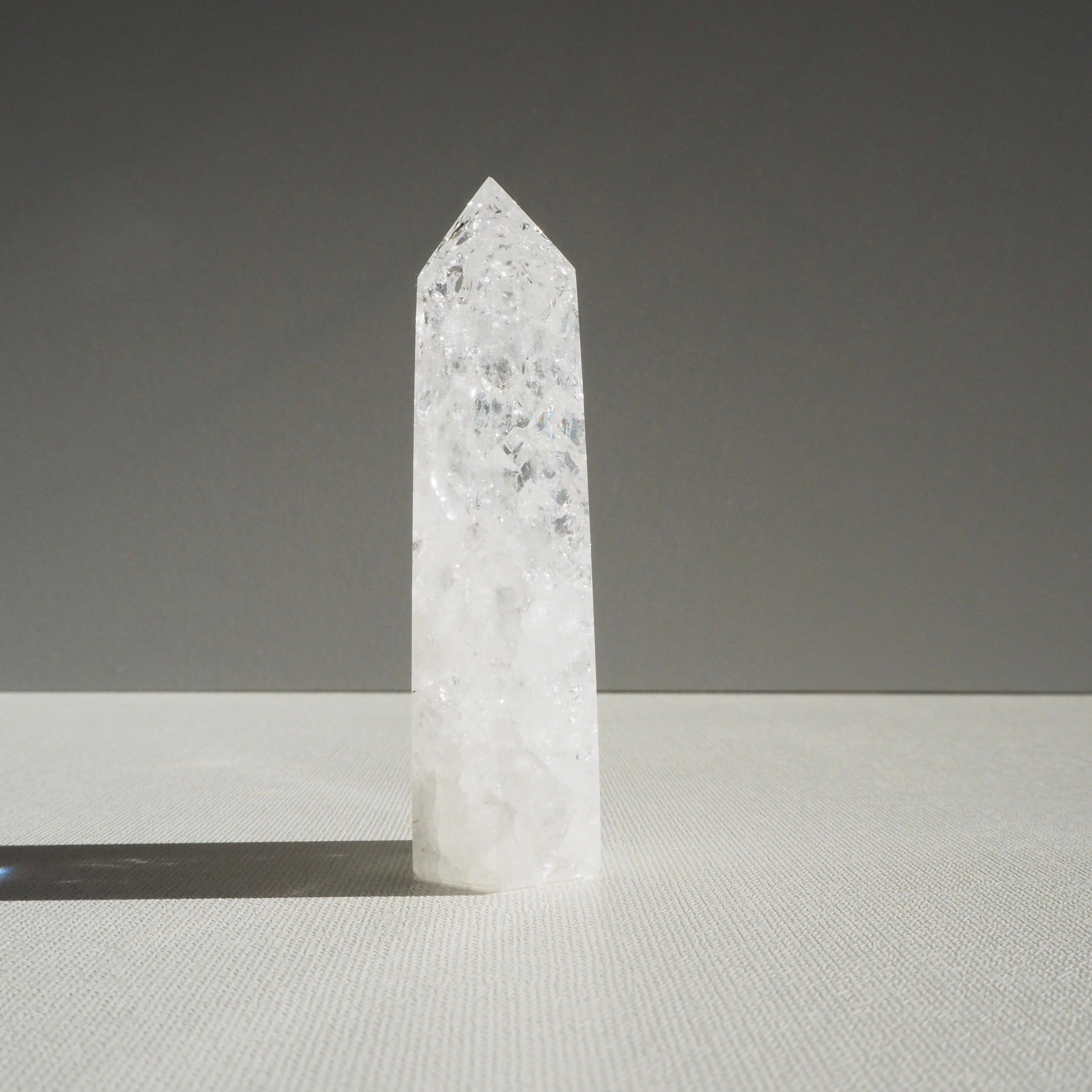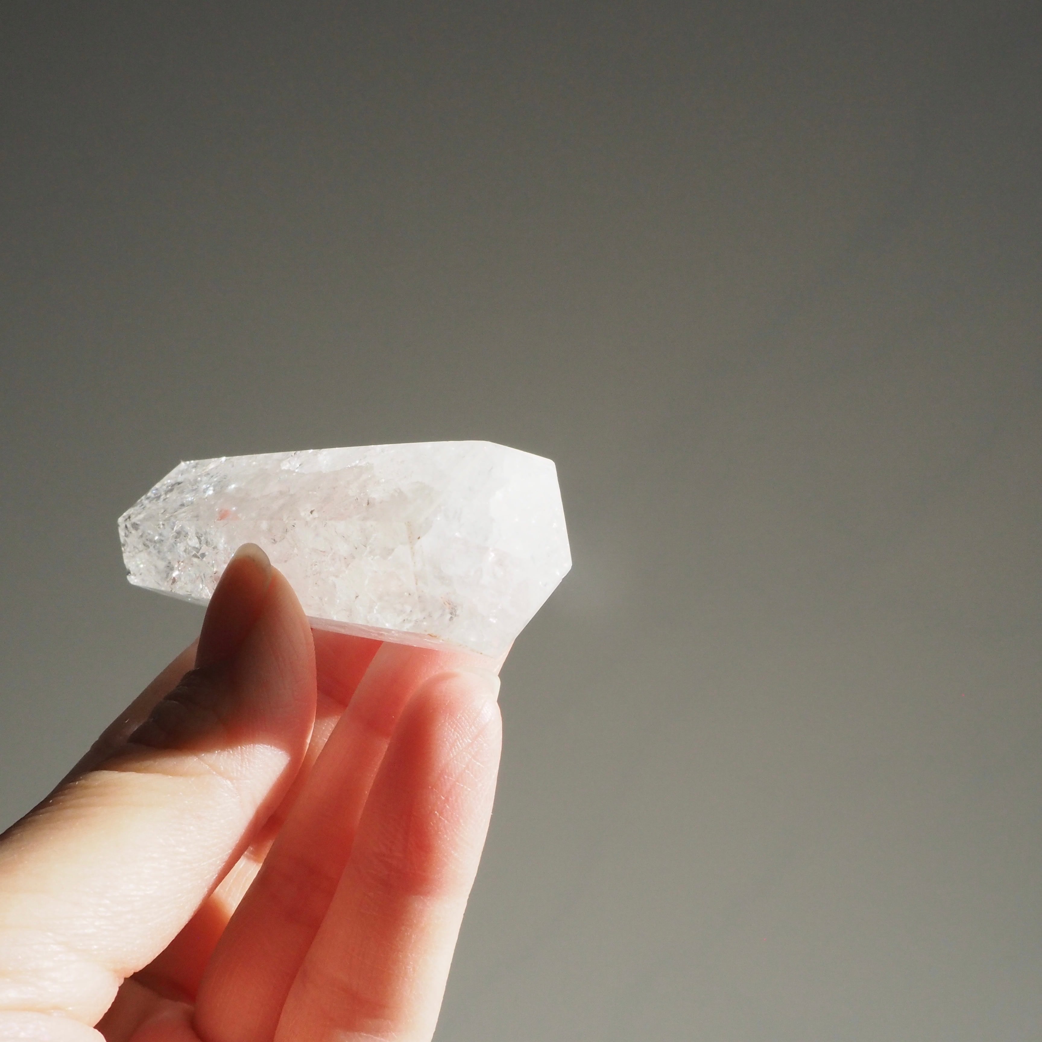 太陽の光を浴びた瞬間、まるでダイヤモンドのように眩い光を放つクラック水晶
