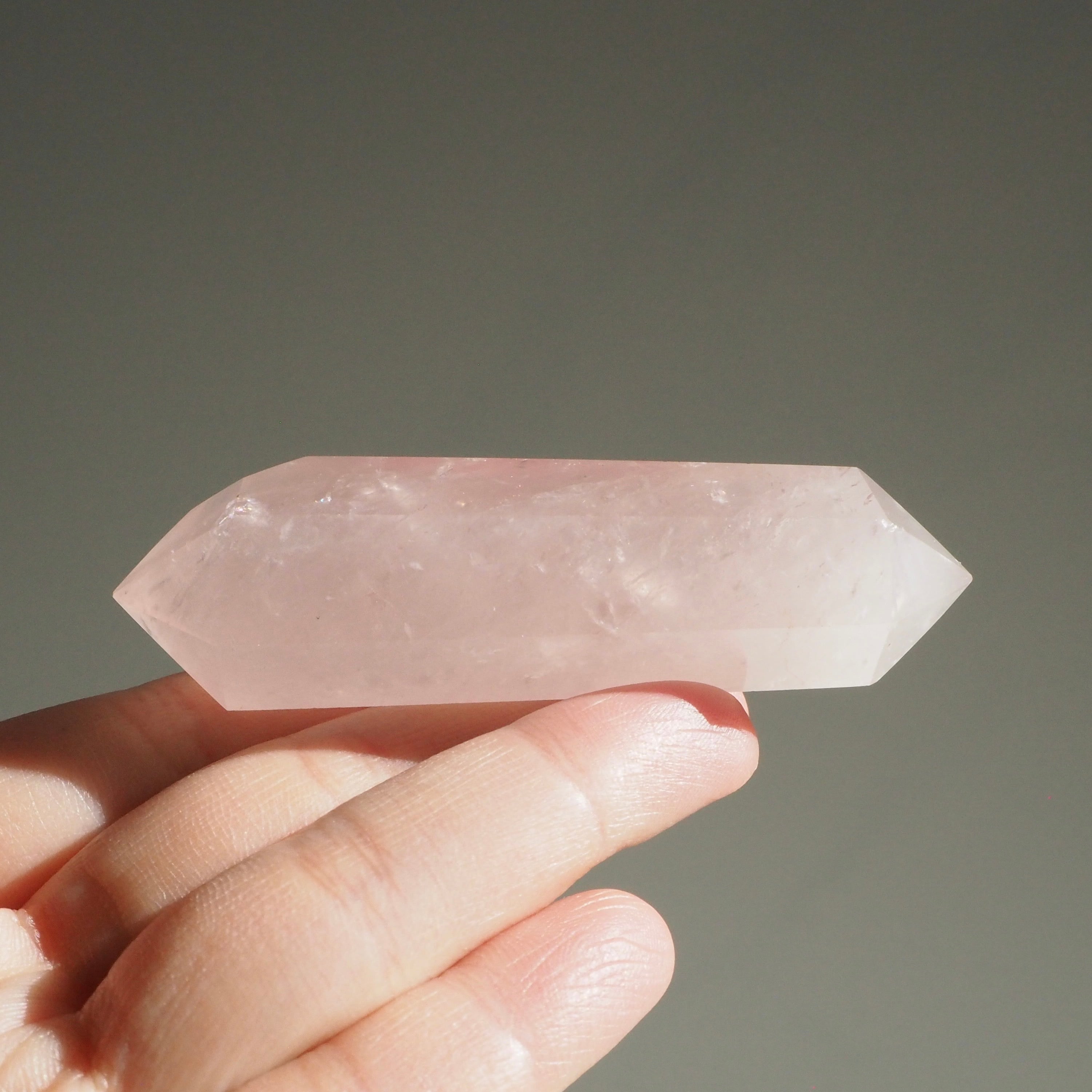 穏やかな光を纏った、ローズクォーツのダブルポイントです。