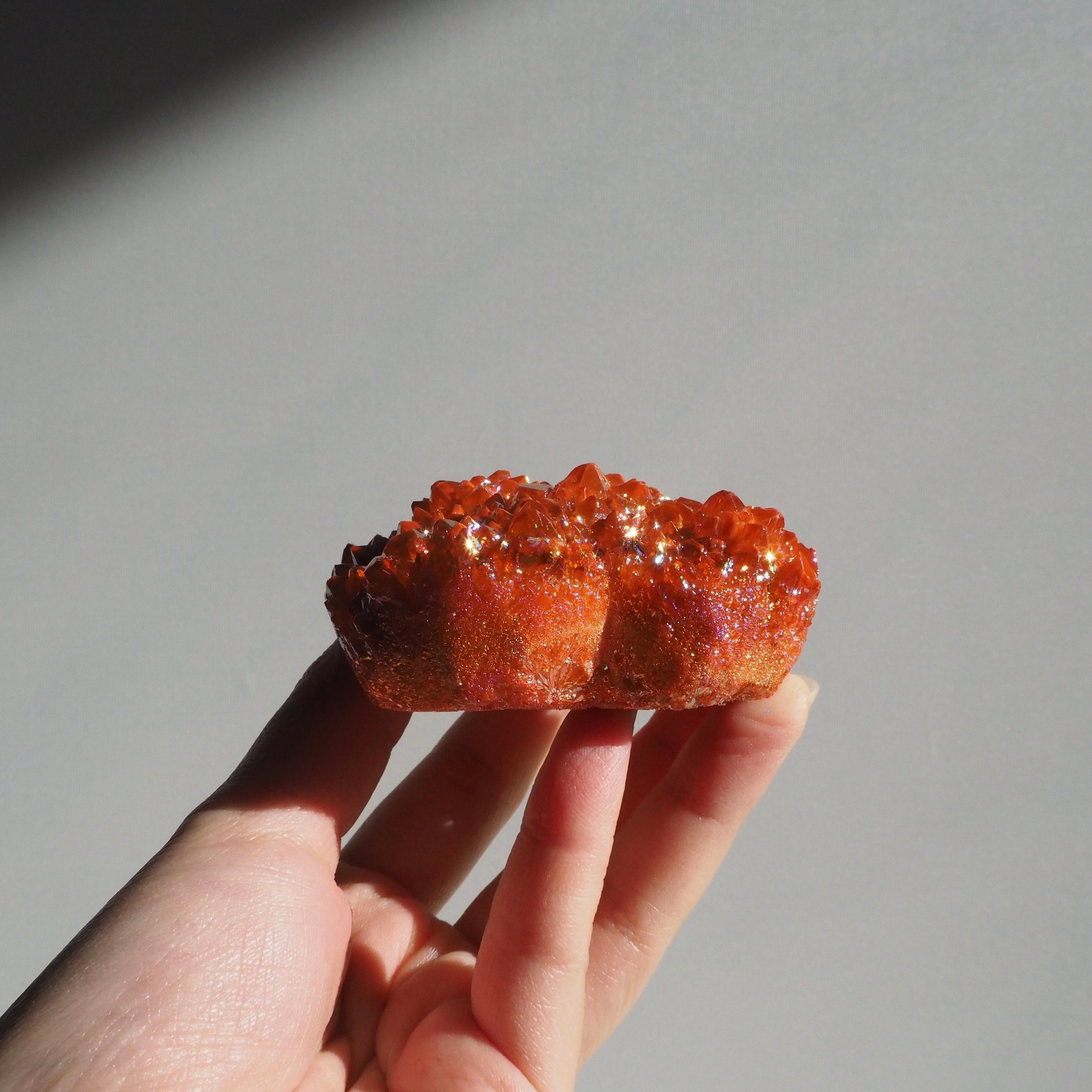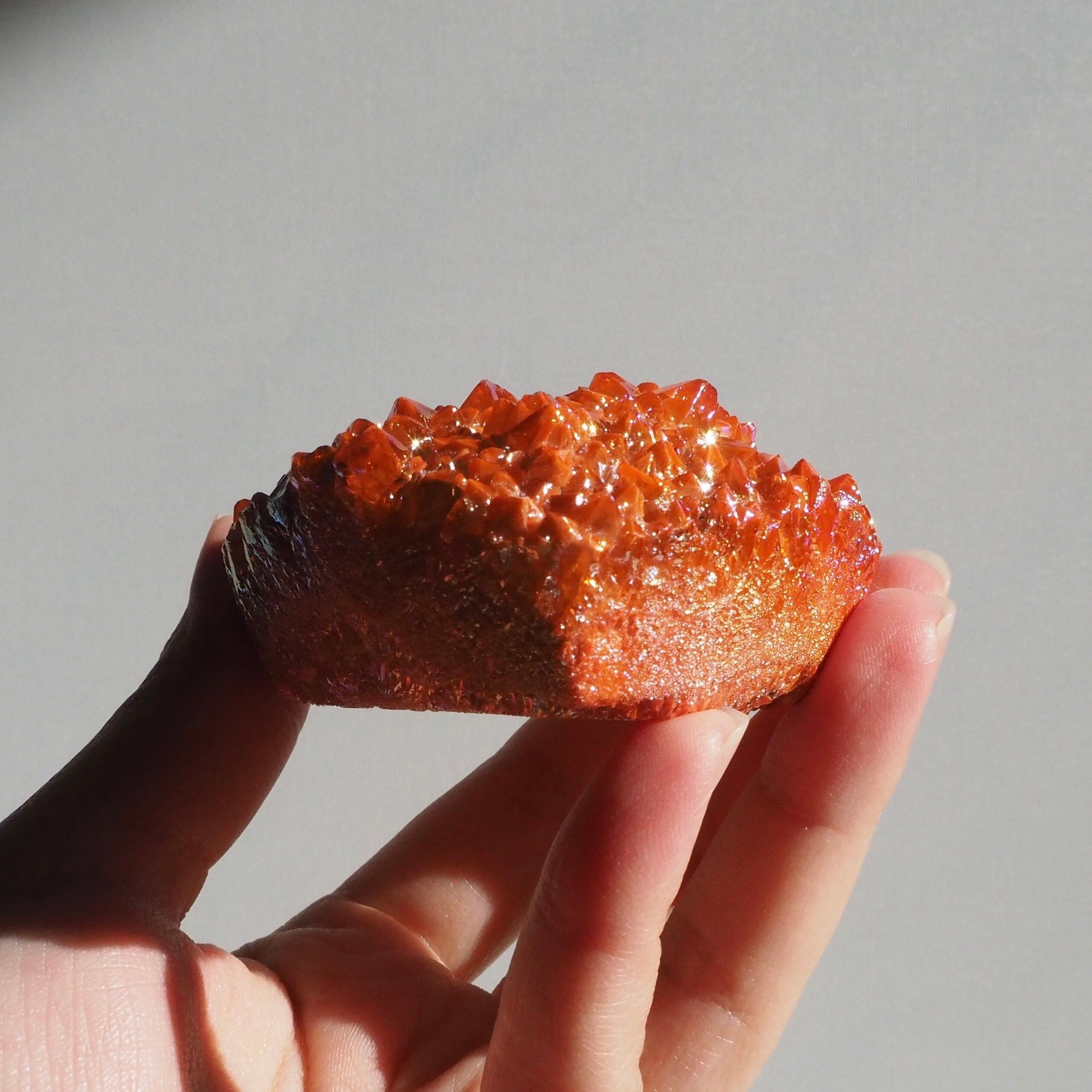 ※オーロラクラスターとは、天然水晶にチタン(銀の場合もあり)を蒸着コーティングする事で作られたものになります。