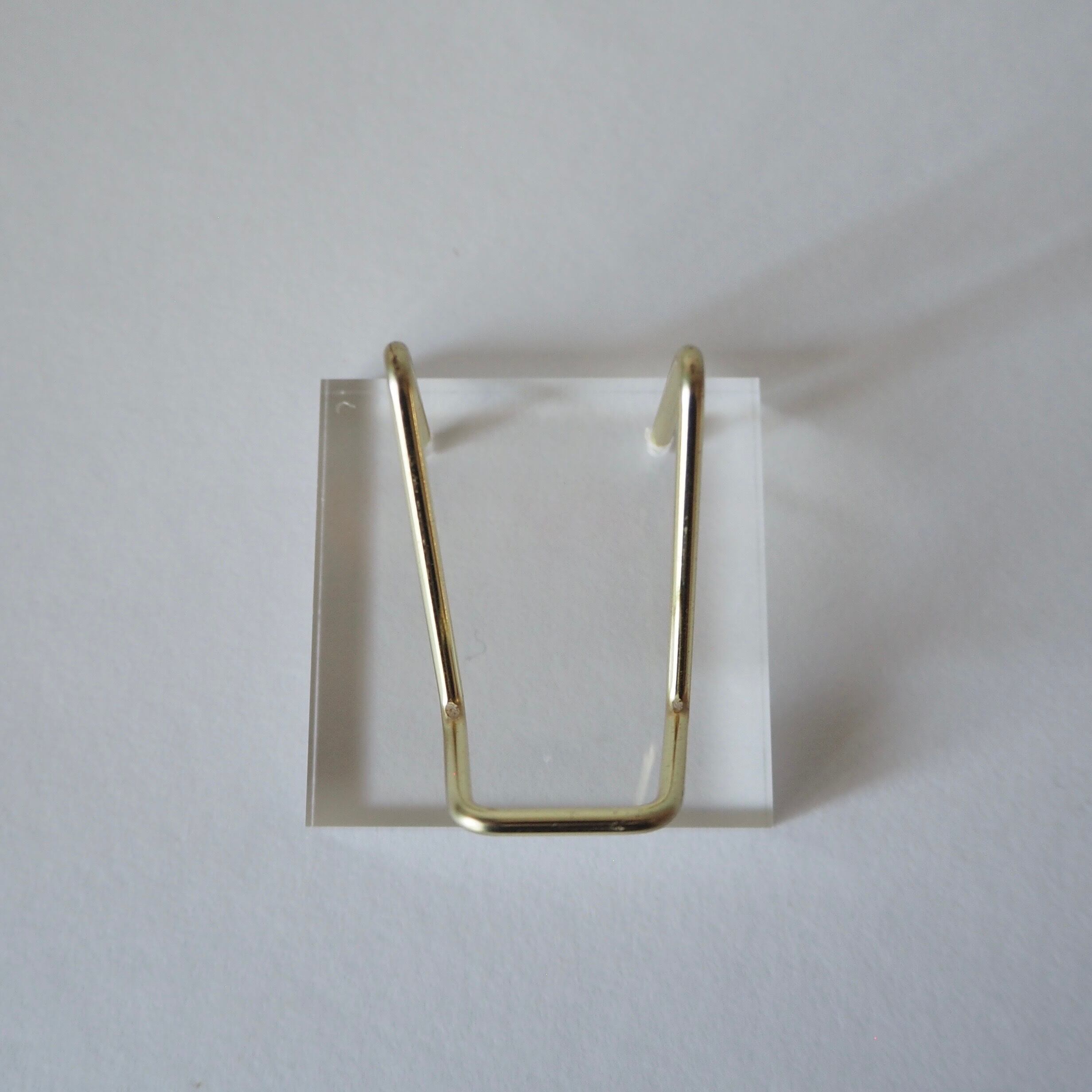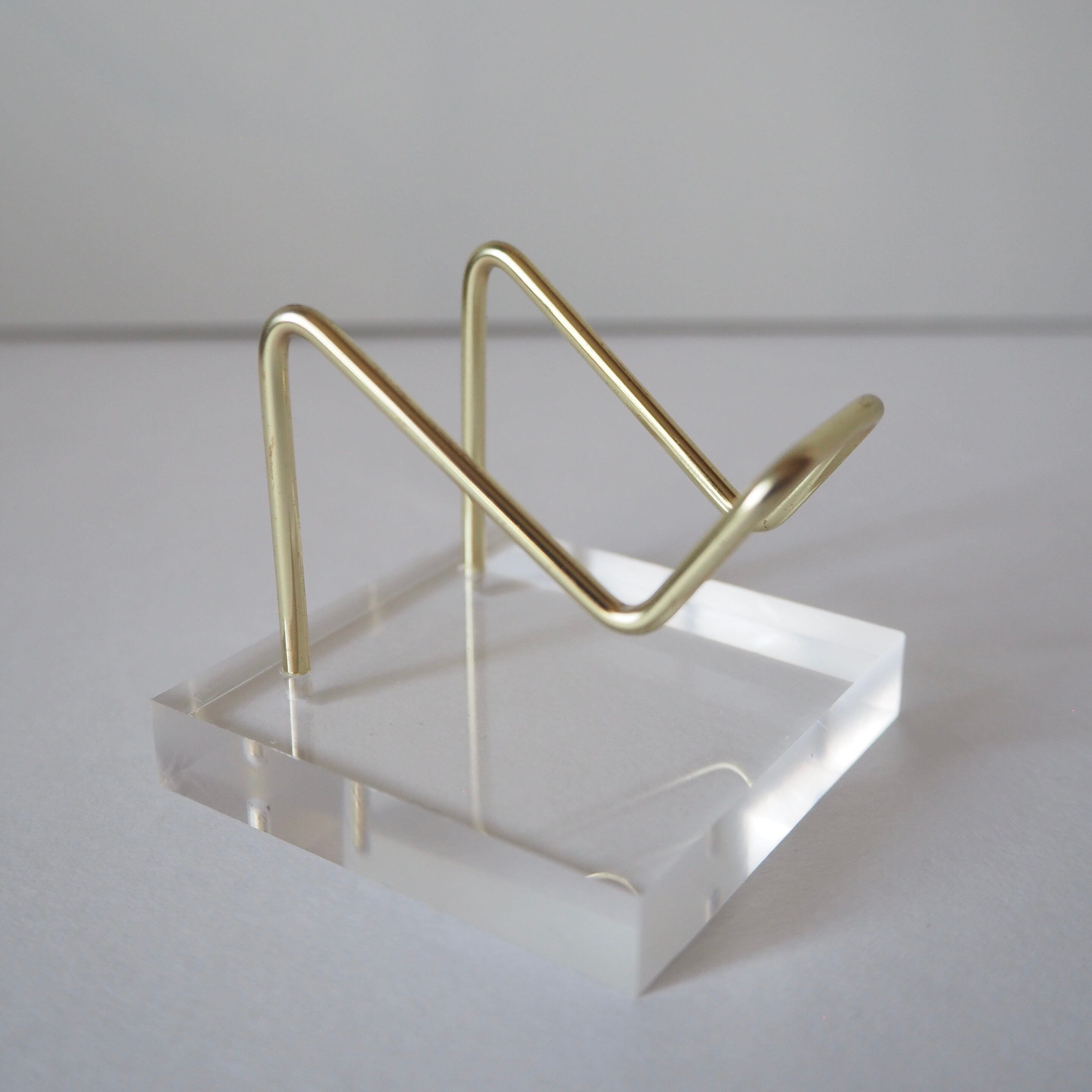 透明なプレートにゴールドの金具を合わせた、大人おしゃれなディスプレイアイテムです。