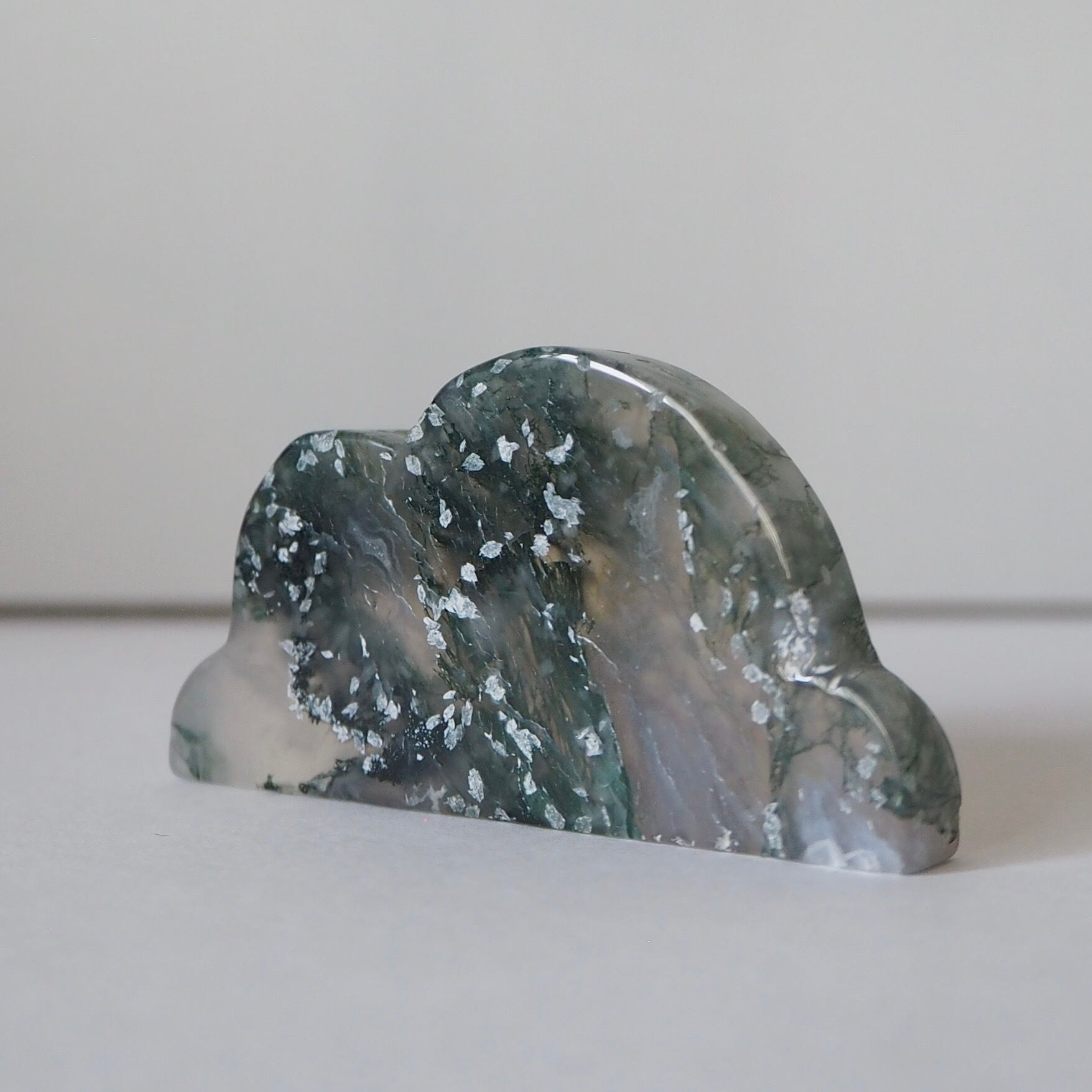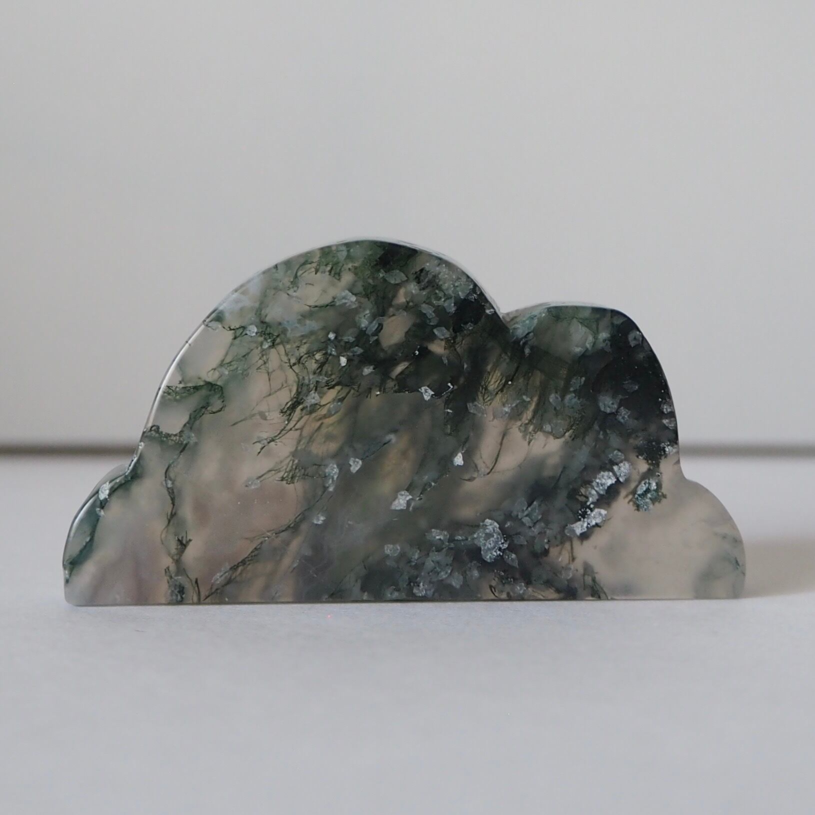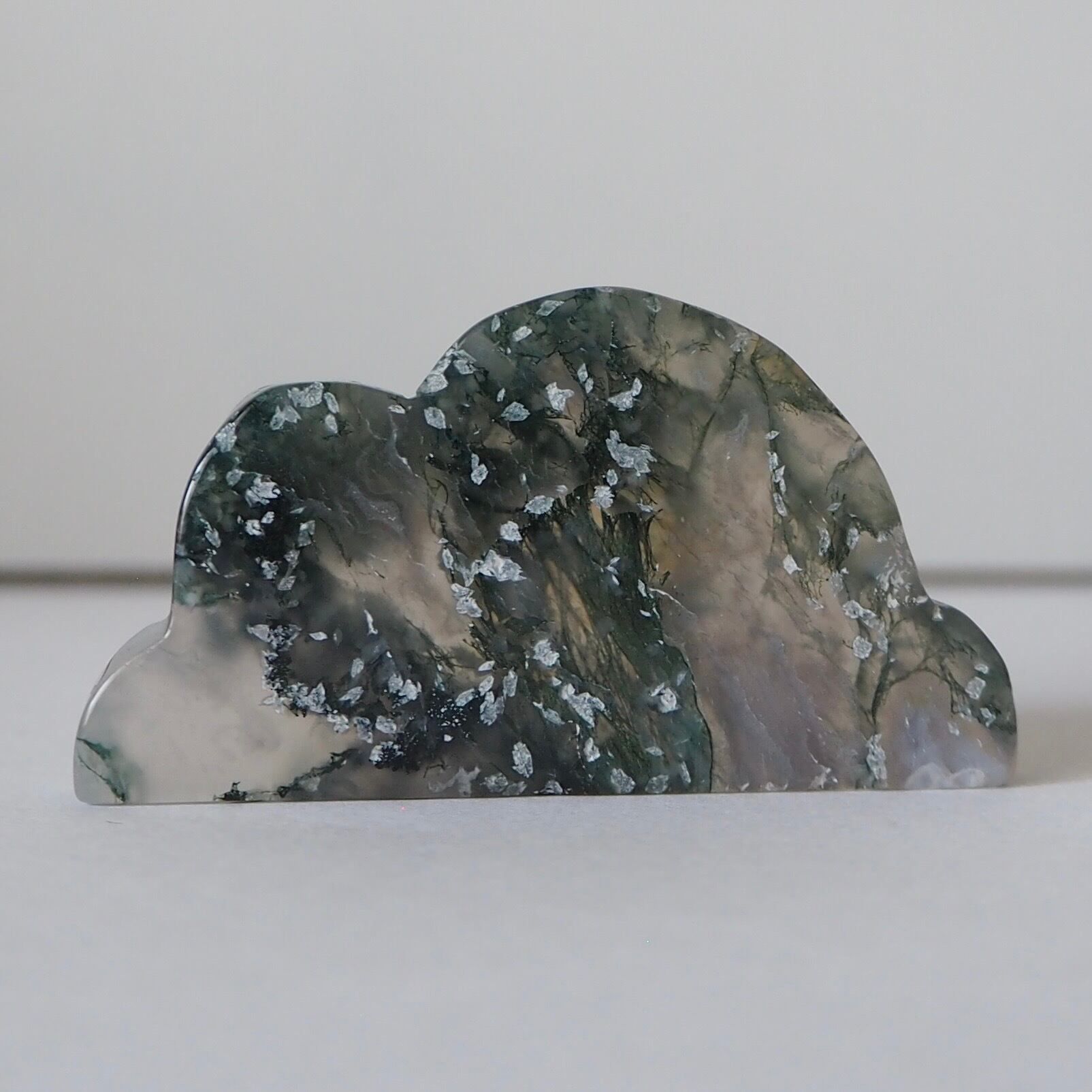 雲のかたちに切り出された、モスアゲートの雲。
